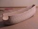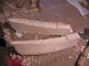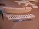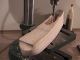 The pictures of this process are presented in chronological order. The pictures show the hull halves at various points in their carving and shaping. One picture shows the rough carved one hull half with the other just cut on a bandsaw to the outside major lines. The other shows one hull half rasped and rough sanded a little closer to shape to establish the proper exterior contours. When the other half is carved I will put them together (I have fitted dowels to the interior) and finish the shaping as a whole unit.