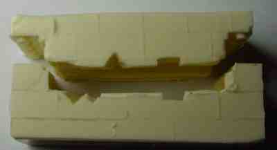Mais les résultat furent décevants. Tout d'abord, la texture du Vinamold est comme un caoutchouc mou. Mais il ne résiste pas très bien et se déchire facilement sur les petits détails. Ainsi, les petits bouchons formés pas les trous autour de la base se sont arrachés, autant en enlevant la matrice qu'en démoulant des pièces.